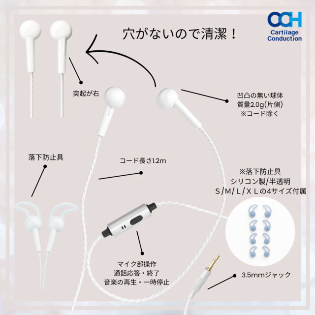 | 質量 | 2.0g(片側、コード除く) |